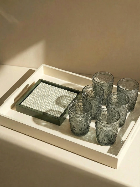 Una bandeja amplia resulta práctica para llevar un café al salón, servir un aperitivo, o las copas tras la cena. Es un básico imprescindible que aporta orden y facilita cada movimiento, siempre cuidando la estética.