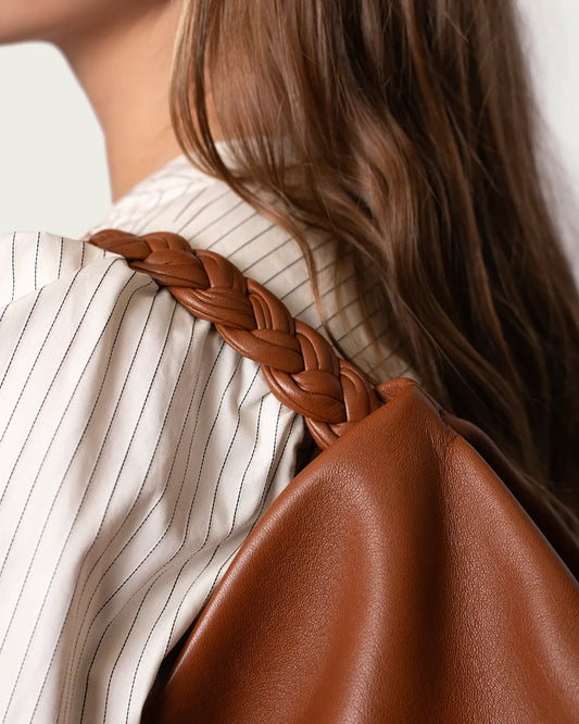 Bolso De Hombro Asa Trenzada Cognac 34x19cm