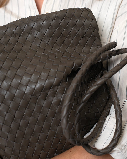Bolso De Piel Trenzado Topo
