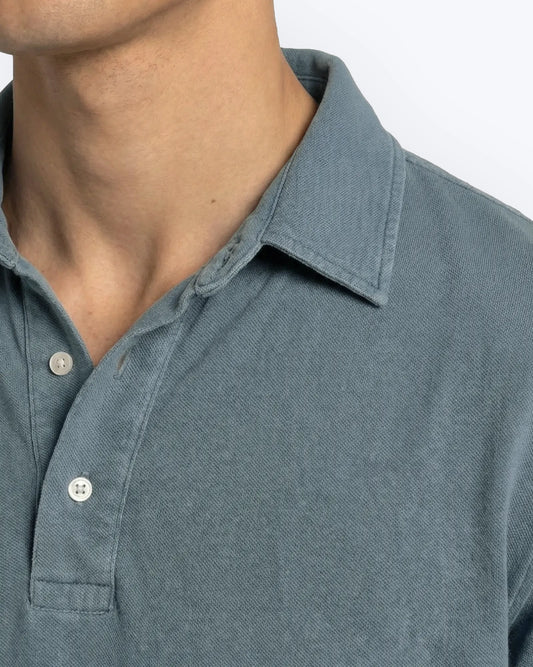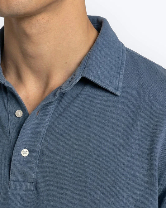 Polo Manga Larga Piqué Azul