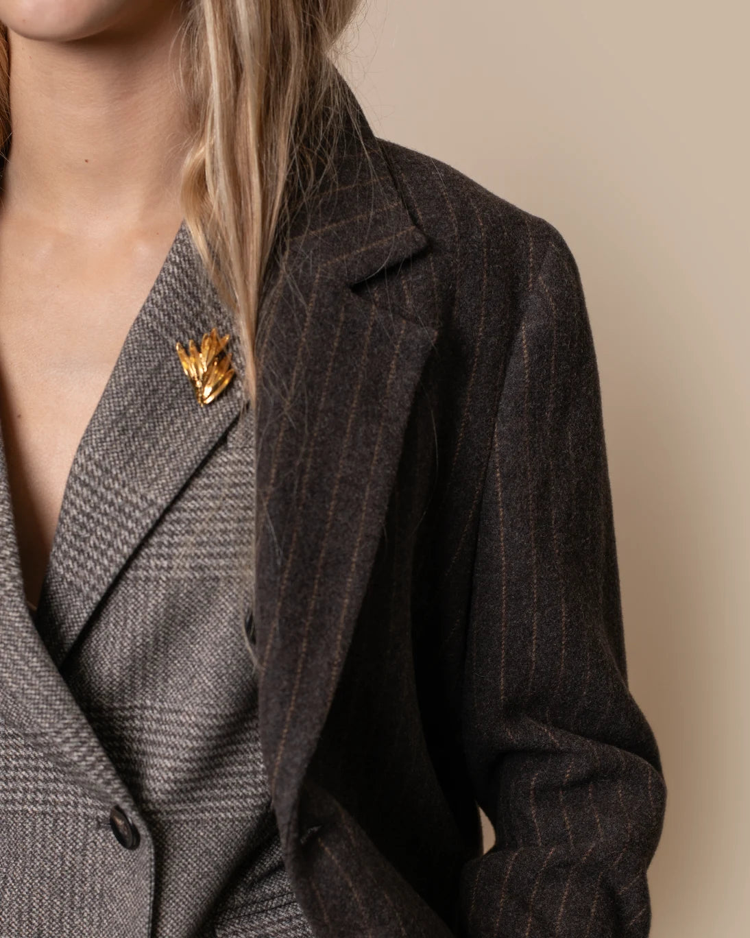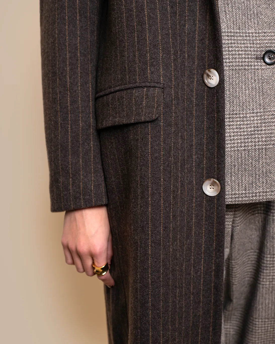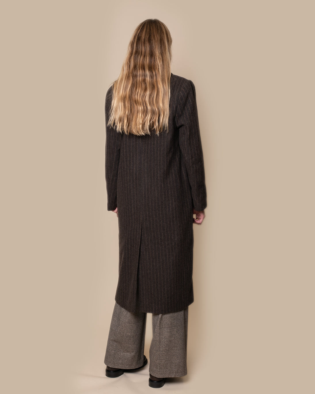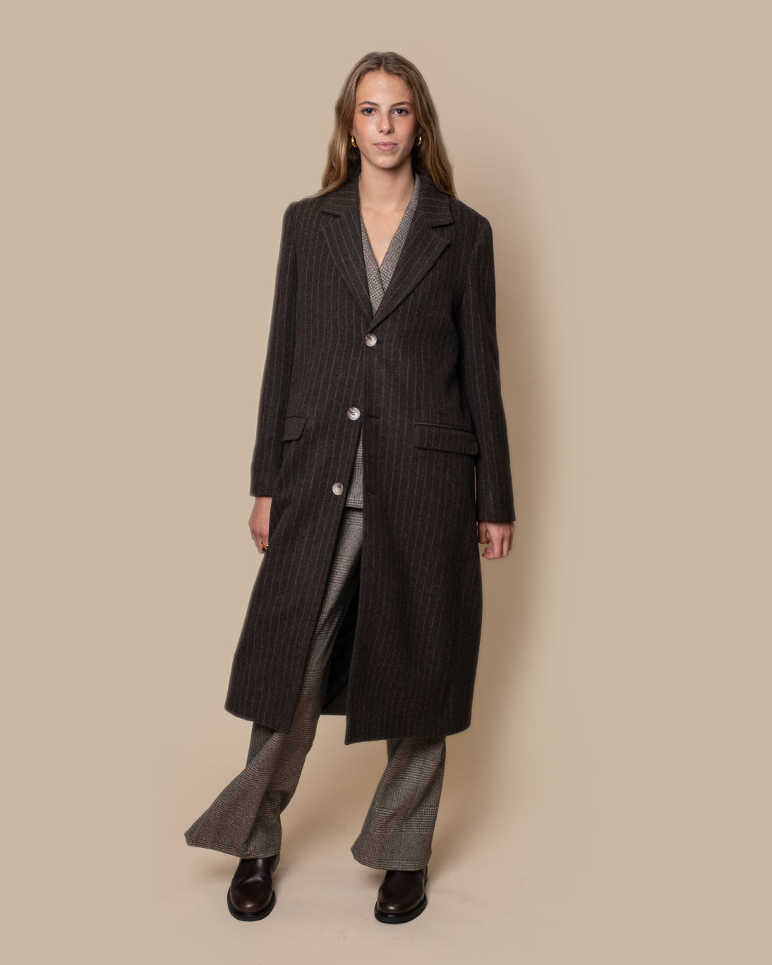 Abrigo largo de corte masculino con raya diplomática en marrón, de la firma francesa Hod Paris.