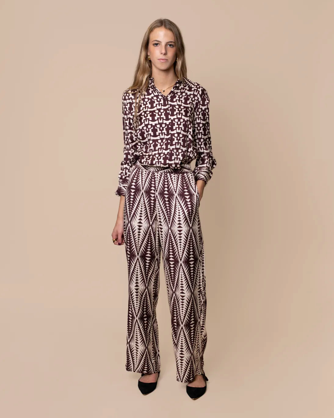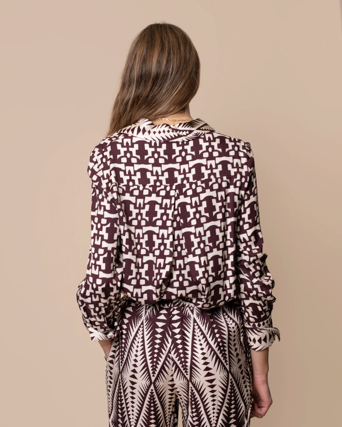 Camisa con estampado geométrico en hueso y granate, de la marca Stella Forest.