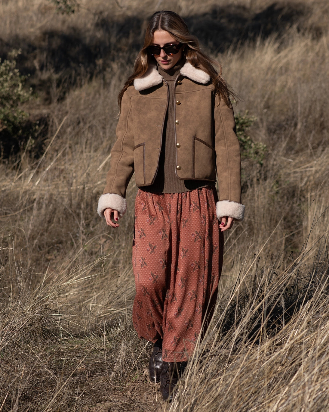 Chaquetón East de la marca Suncoo. El corte es recto hasta cadera, el cierre es con botones dorados en la parte delantera. Tiene bolsillos de parche por delante.