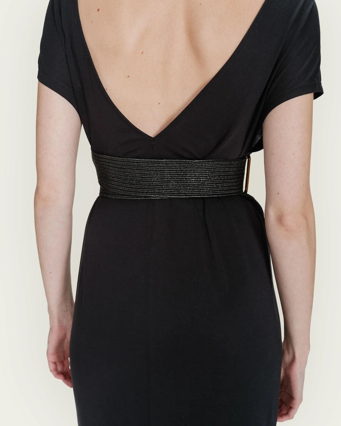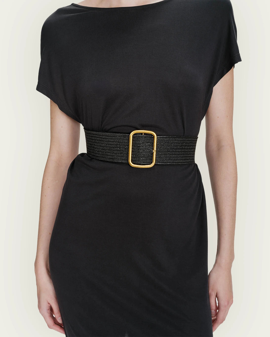 Cinturón ancho trenzado de Grace & Mila, en color negro.