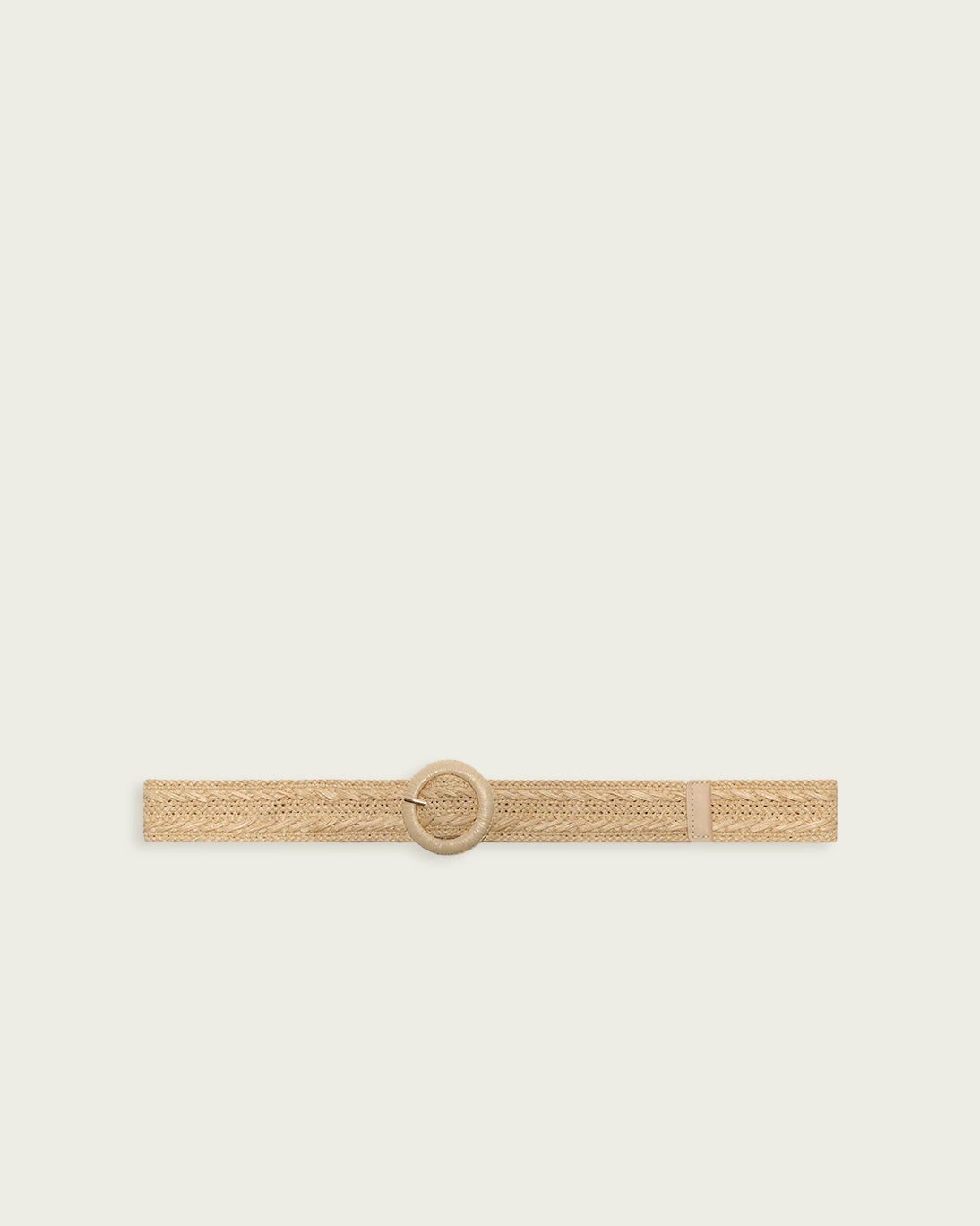 Cinturón trenzado de Grace & Mila, modelo Varelle, en color beige, que hace el efecto de rafia natural.