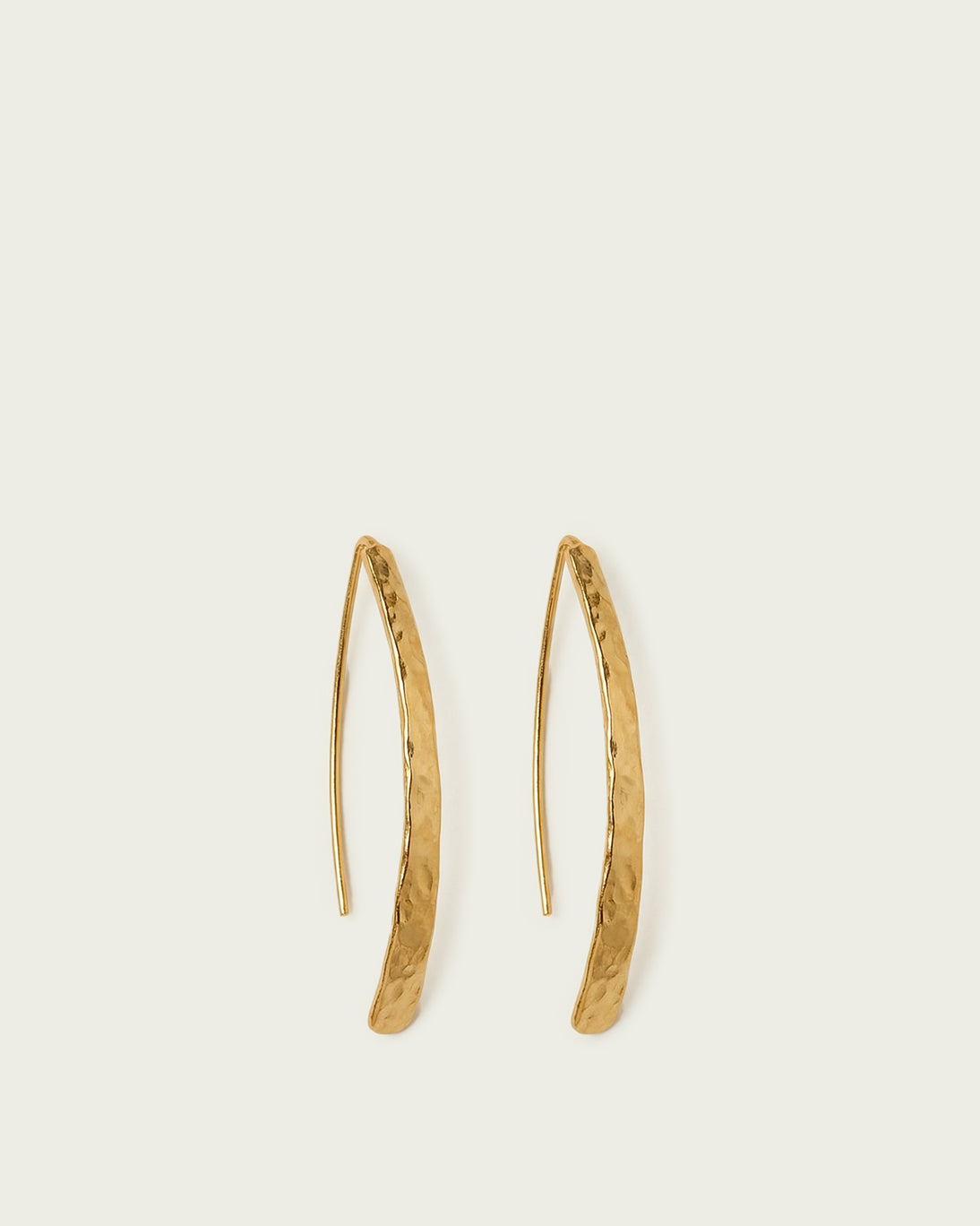 Pendientes largos dorados, con una tira curva con acabado martelé.