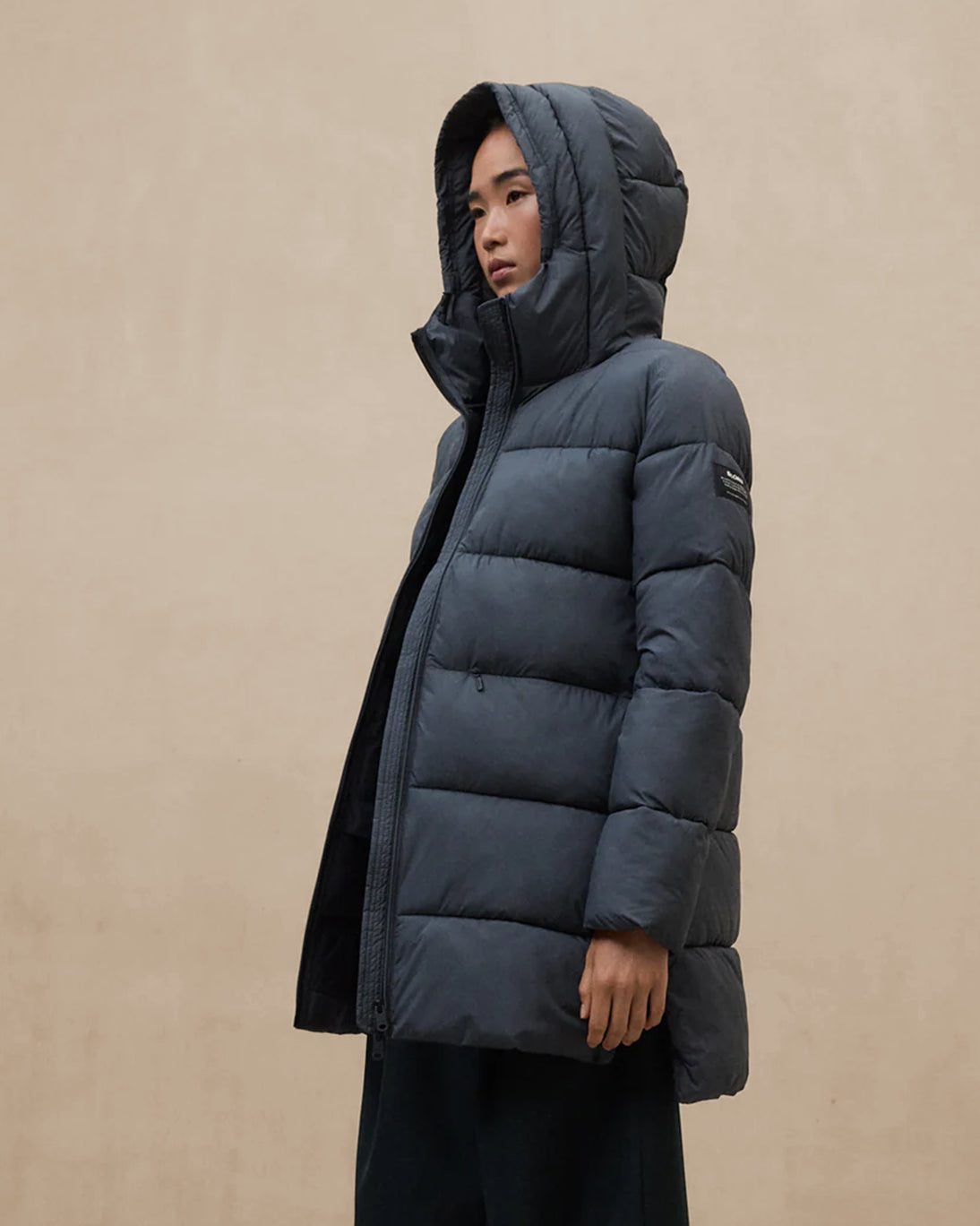 Abrigo plumas Marangu de la marca Ecoalf. Combina diseño funcional y compromiso medioambiental. El tejido principal ofrece una excelente capacidad térmica con un tacto ligero y confortable. El tejido es repelente al agua,