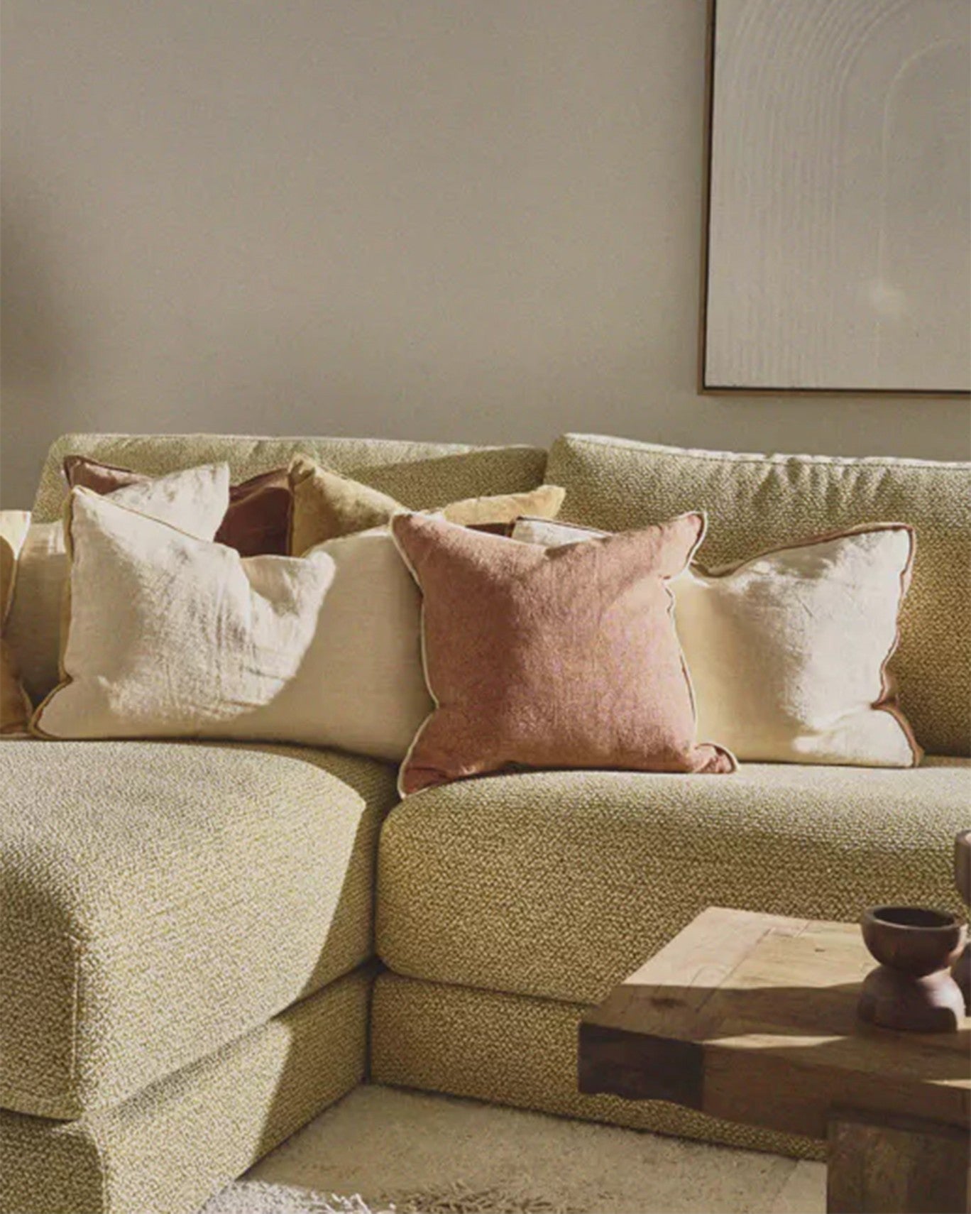 SKU:115|XAL00534|CAMEL|01Almohadon Opposites Ocre 45x45cm