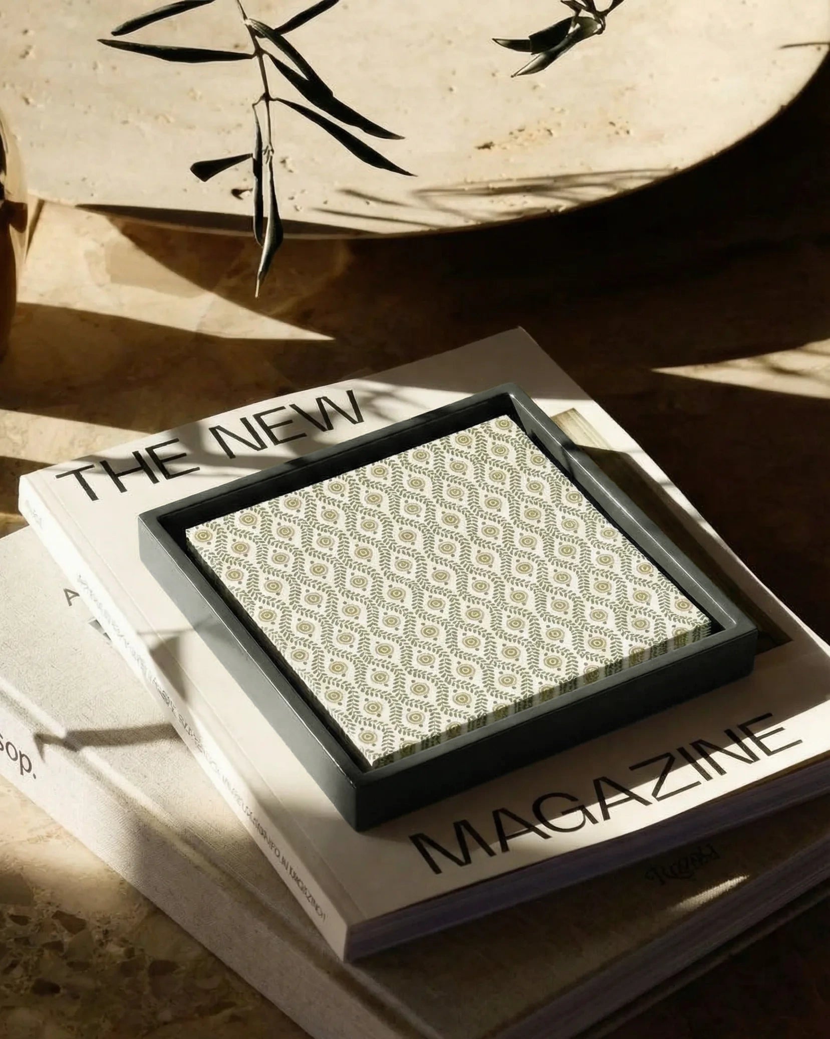 Es ideal como servilletero, para trasladar al salón un café o un refresco, o para poner encima de una mesa o cómoda, agrupando diferentes objetos decorativos.
