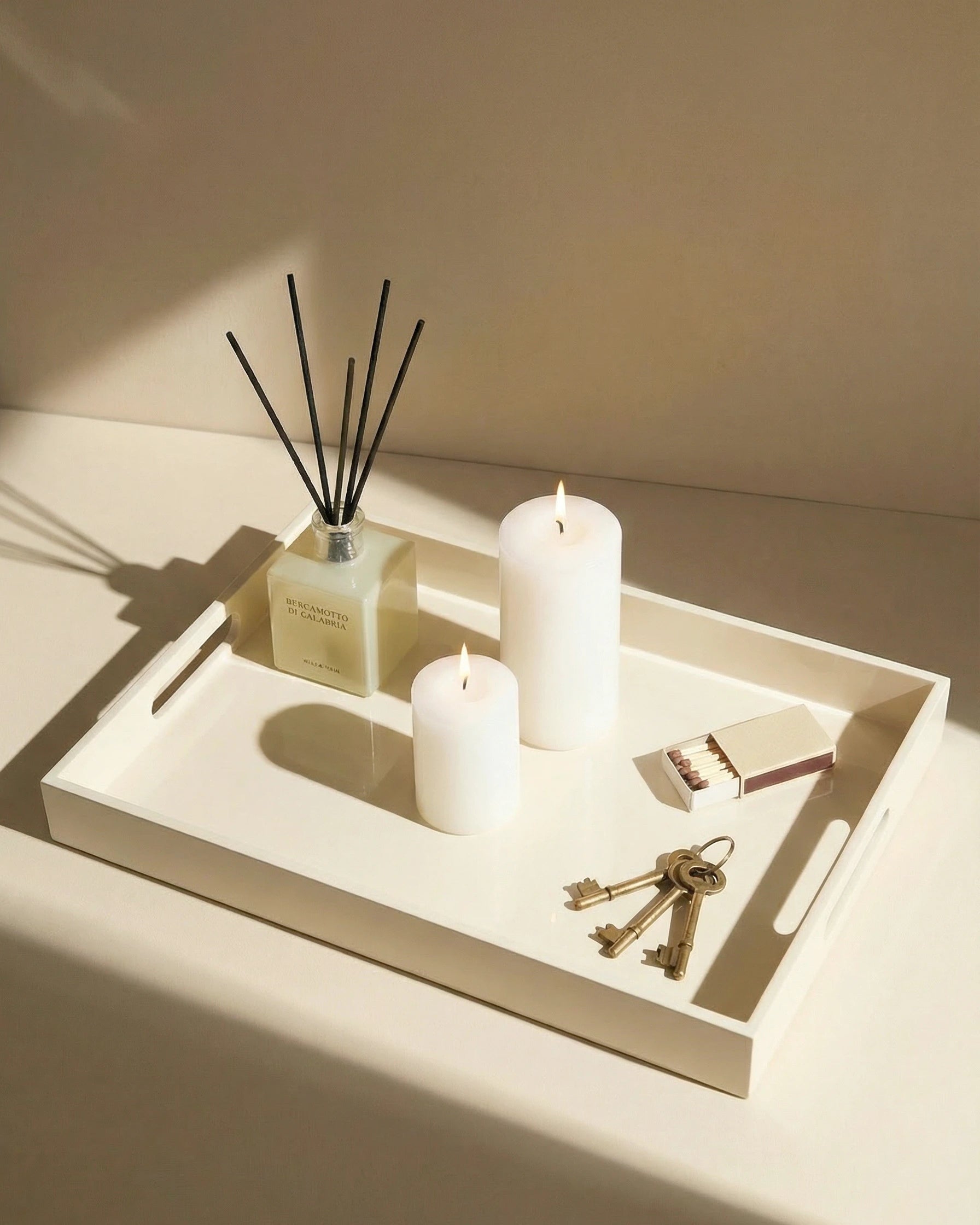 Es ideal para servir un aperitivo, unos cafés o unas copas, pero también para poner sobre un mueble y reunir otros objetos decorativos.