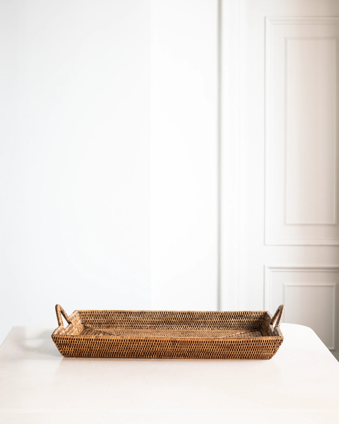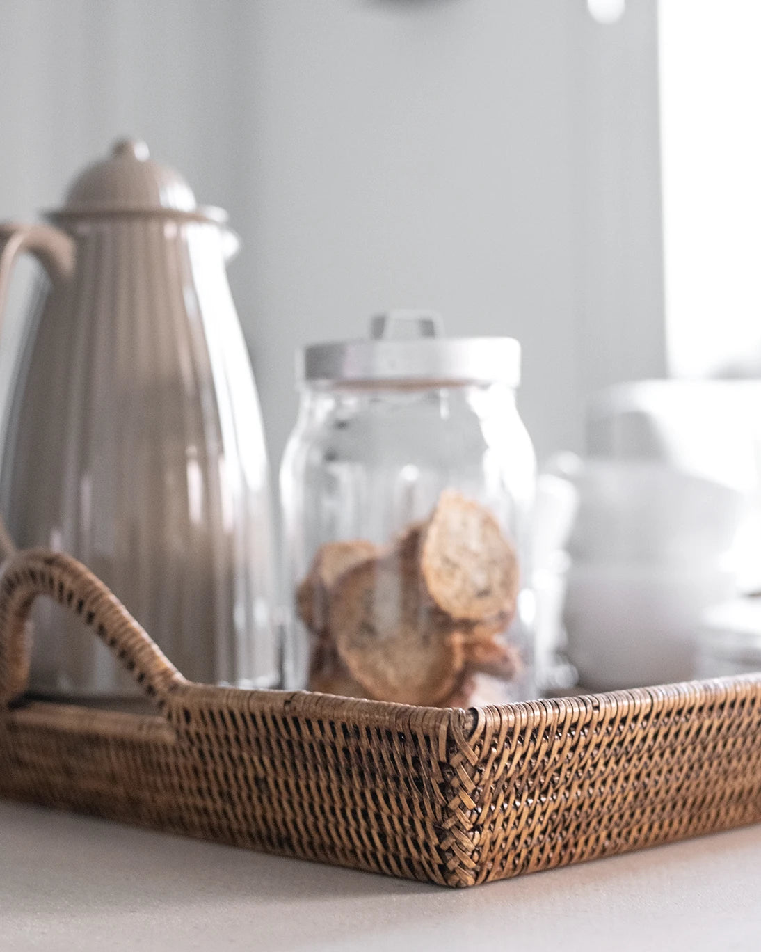 Bandeja de ratán 63x41x6cm de la marca Ishela. Aporta calidez y elegancia natural a tus espacios, elaborada en ratán de alta calidad. Con un diseño funcional, una pieza ideal para servir, organizar o decorar.