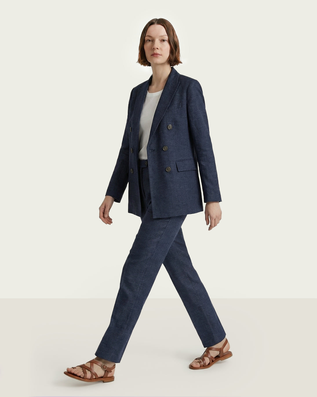 Confeccionada en una mezcla de lino y algodón, ofrece la ligereza manteniendo una caída impecable. La ligera elasticidad del tejido garantiza mayor comodidad y libertad de movimiento, adaptándose al ritmo del día a día sin perder su forma.