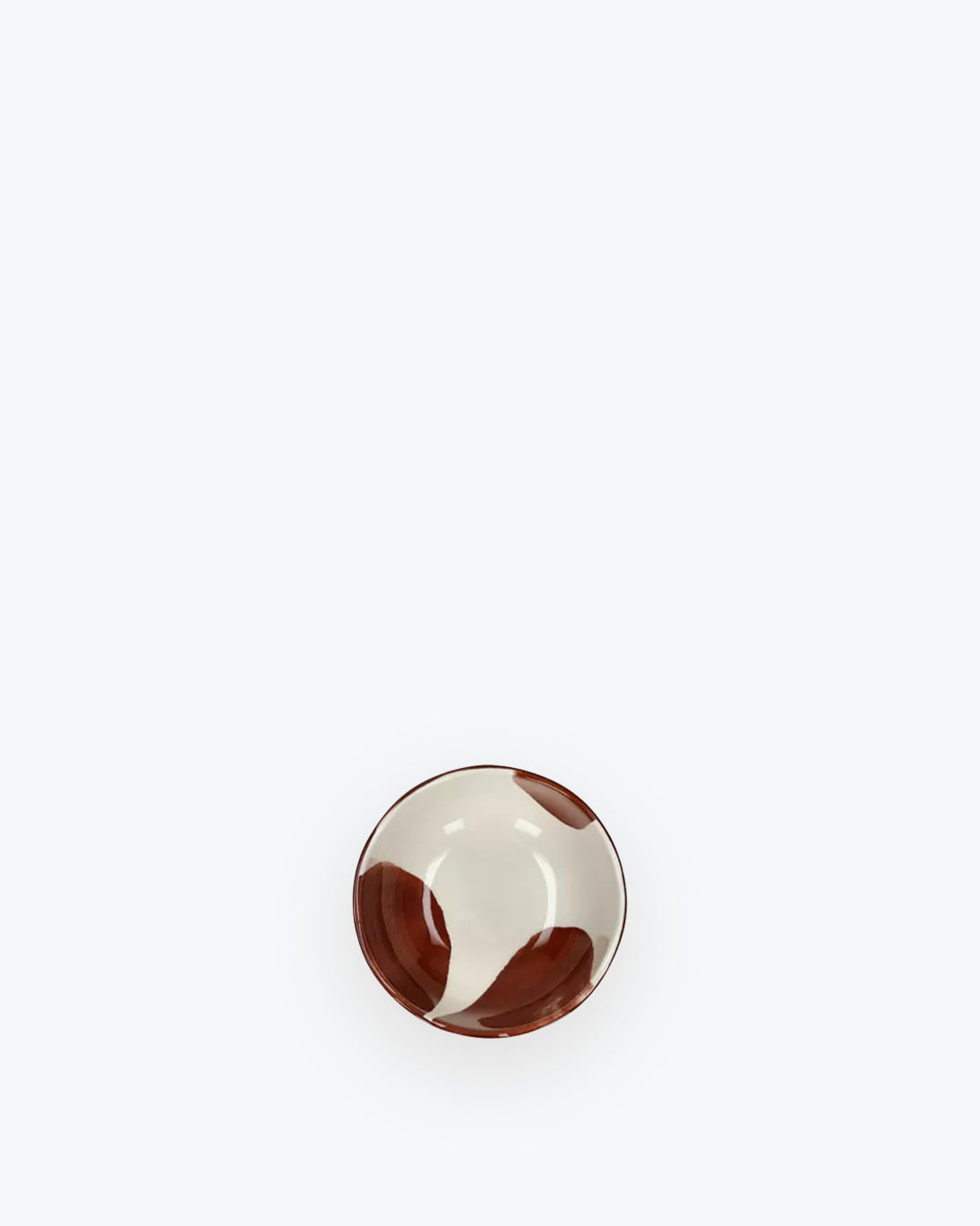 Bowl de porcelana, de 11 cm de diámetro, decorado en terracota. Queda fenomenal combinado con los platos del mismo color o los que tienen la decoración en verde.