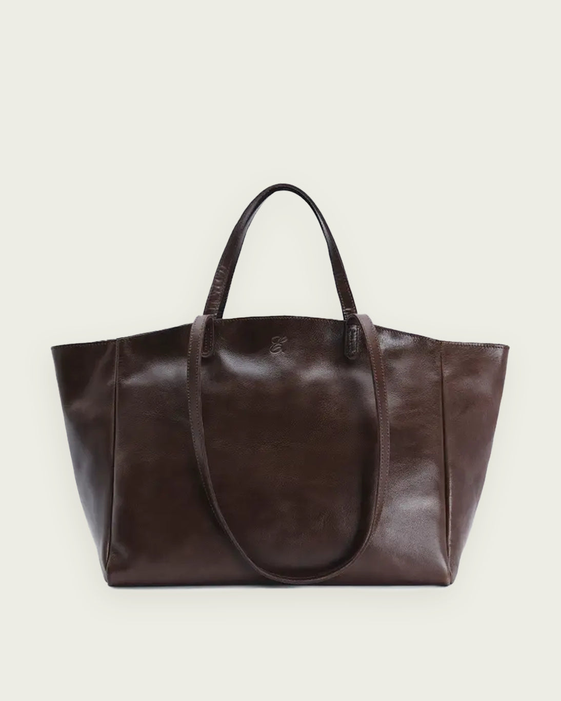 Capazo de Eseoese. Es grande y de piel en color marrón chocolate, un básico elegante y atemporal. Su diseño amplio lo convierte en el aliado perfecto para el día a día.