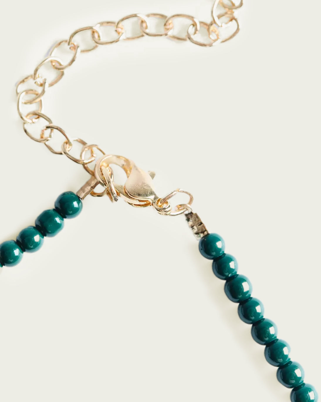 Collar Lauren de la marca Eseoese. Las bolas son de diferente tamaño en color azul petróleo. El cierre es de cadena con mosquetón.