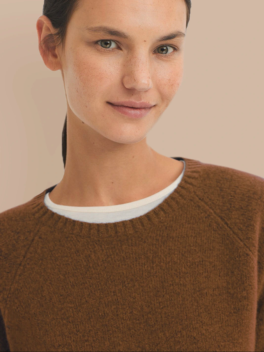 Jersey corto de lambswool con cuello redondo y manga ranglan, de Nice Things, en marrón.