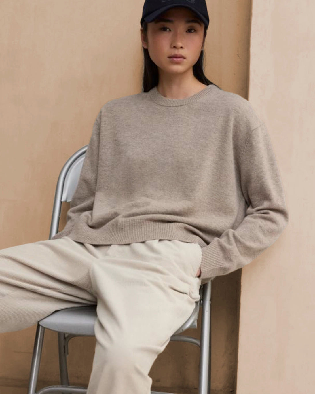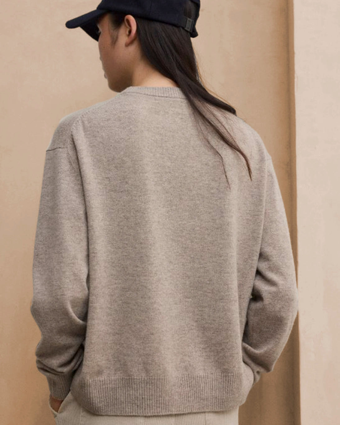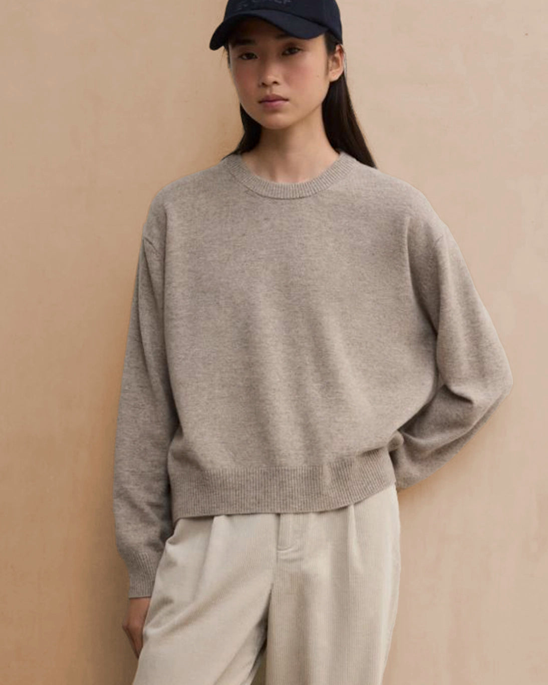 Jersey de lana reciclada con cuello a caja de Ecolaf, de color tostado.