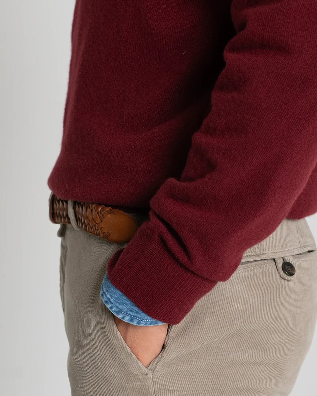 Jersey de pico burdeos de la marca Tway. Estilo, comodidad y calidad. Su tono burdeos intenso aporta un aire de sofisticación y calidez, perfecto para la temporada otoño-invierno y para quienes buscan destacar con un color sobrio pero con personalidad.
