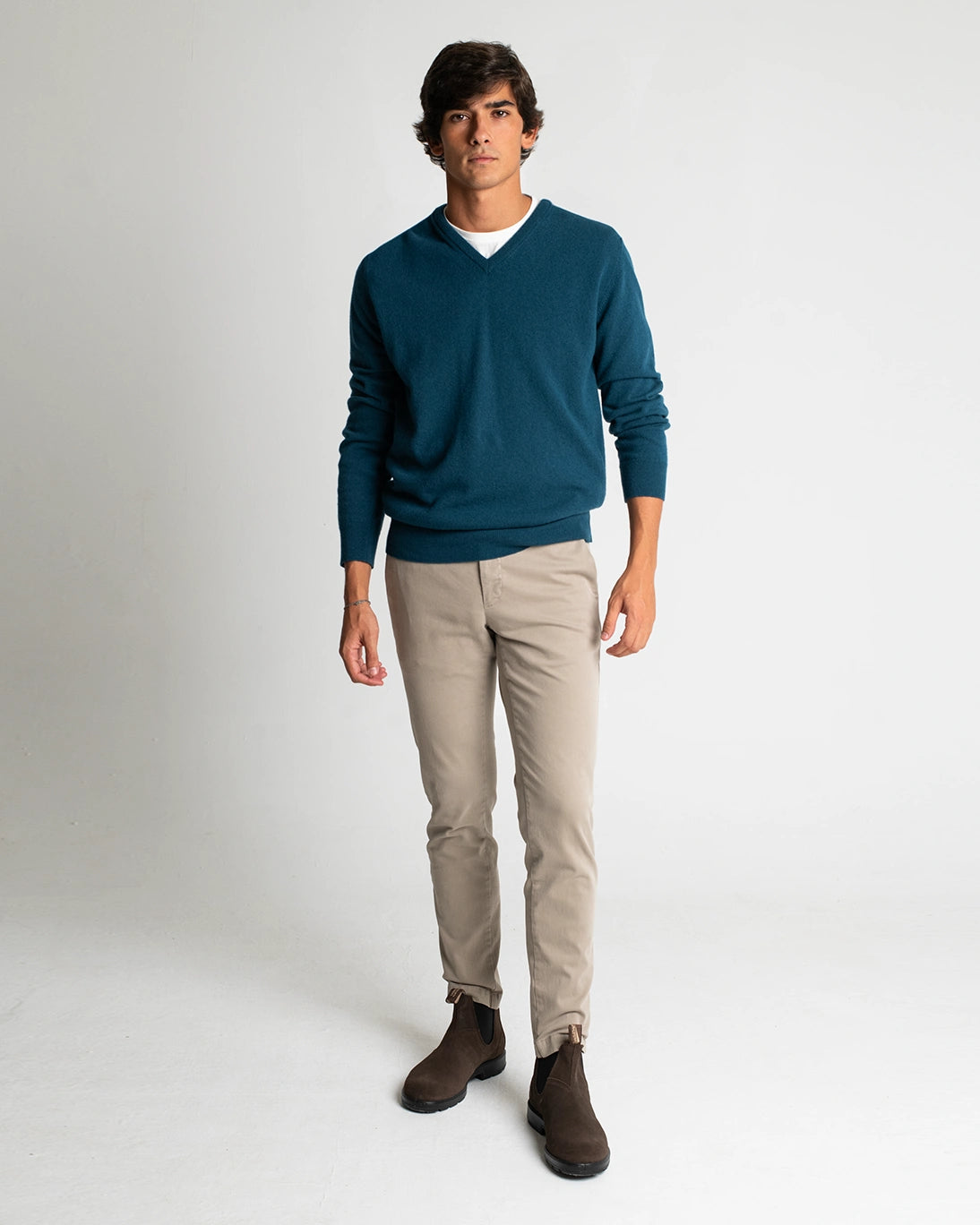 Jersey de cuello pico en color azulón de Tway. Estilo, comodidad y calidad. Su tono azulón profundo se convierte en el protagonista de cualquier conjunto. Un color que aporta personalidad tanto si lo utilizas con pantalones claros como oscuros.