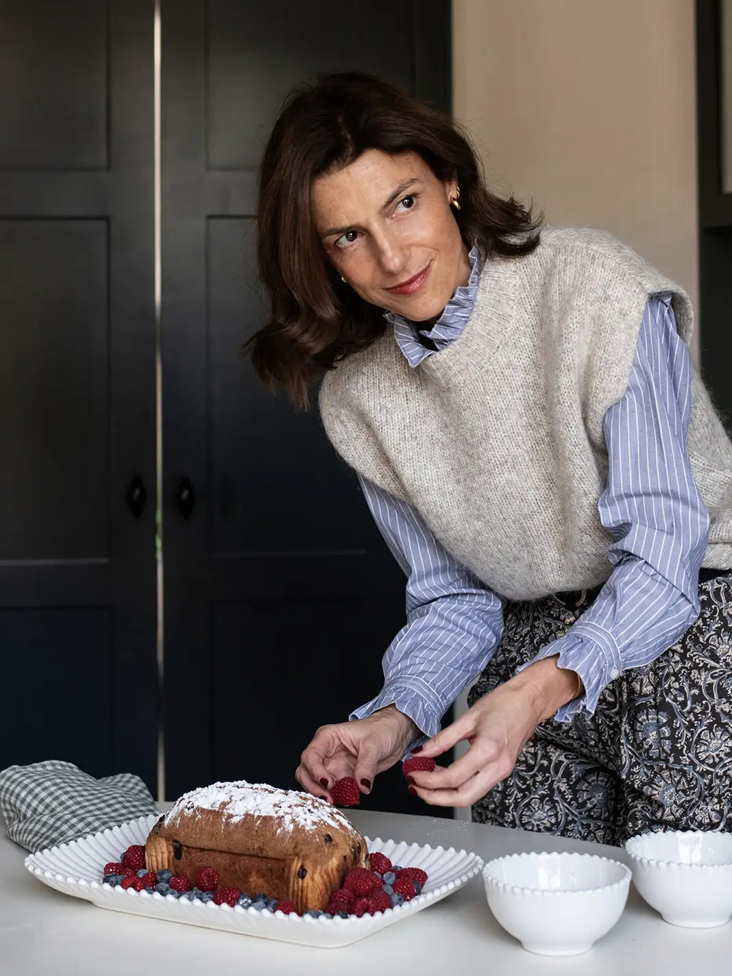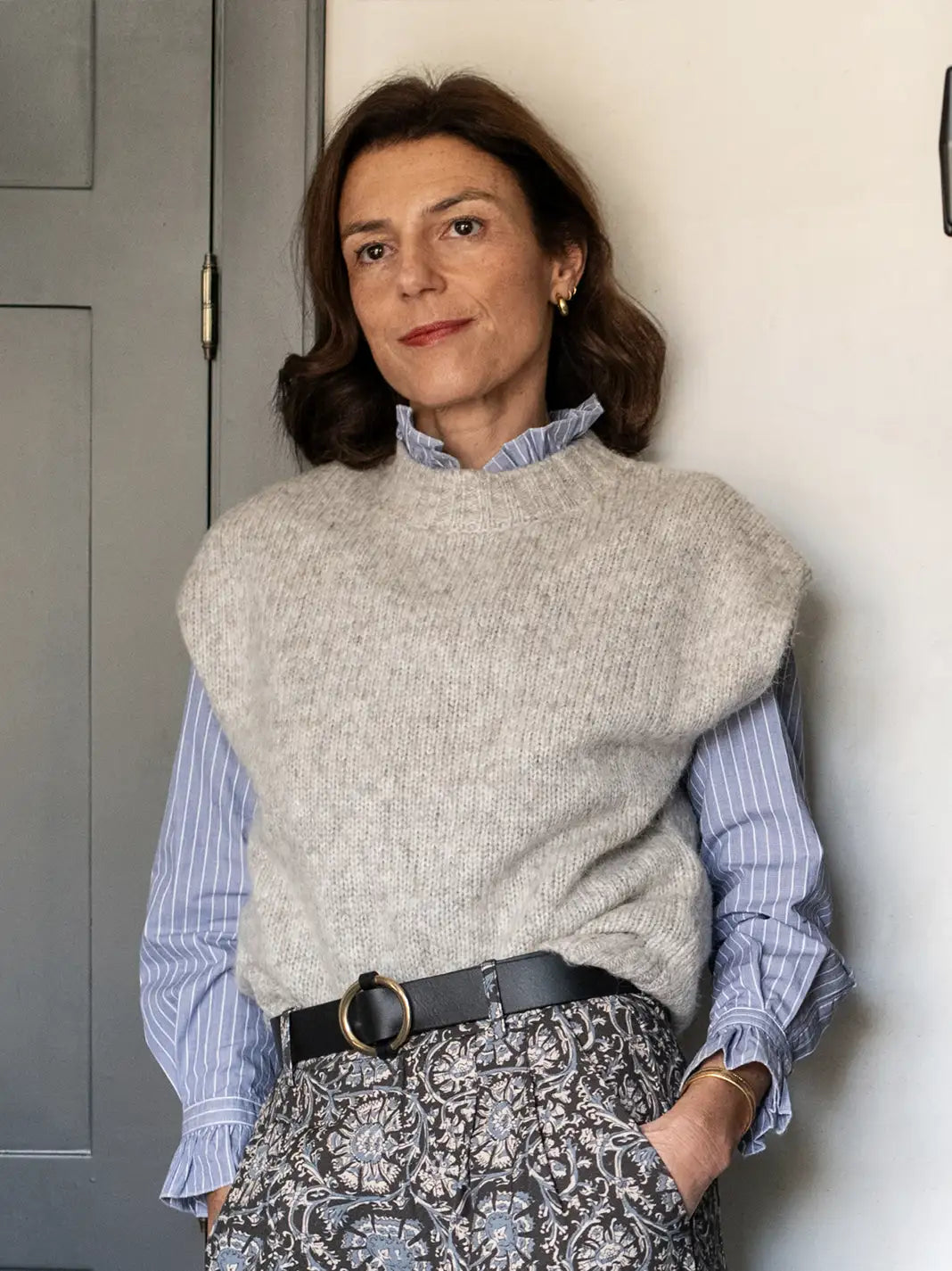 Chaleco de punto con cuello redondo de la marca Hartford tejido en una cálida mezcla de lana y alpaca, en color hueso.