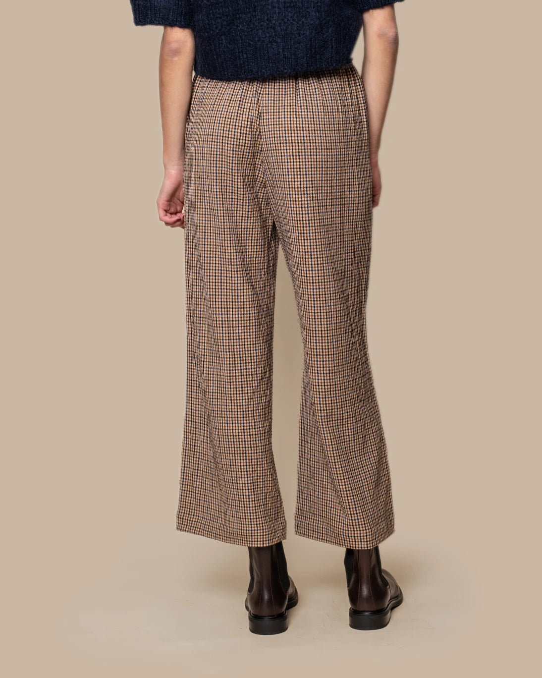 Pantalón en tejido de cuadritos, en tonos marrones, efecto arrugado, de la marca Nice Things.