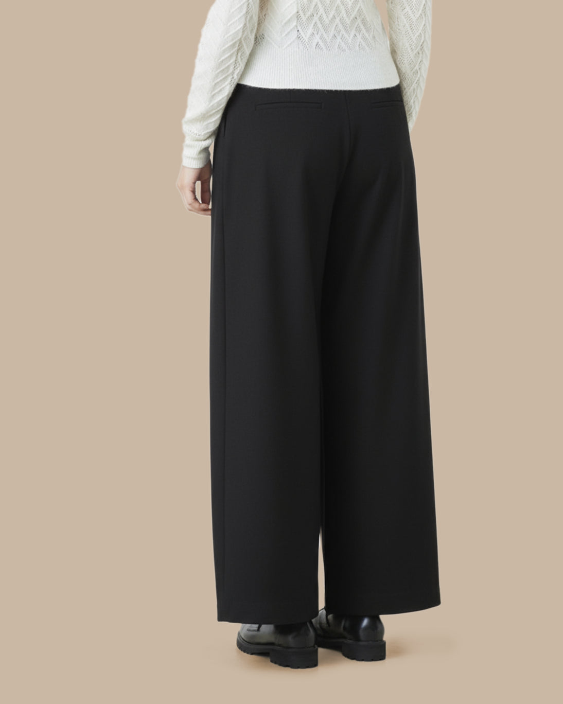 Pantalón Jason de la marca Suncoo. El tiro es alto y ancho con cinturón. El cierre es con cremallera y corchetes bajo la tapeta. Tiene además, un cordón en la cintura ajustable.