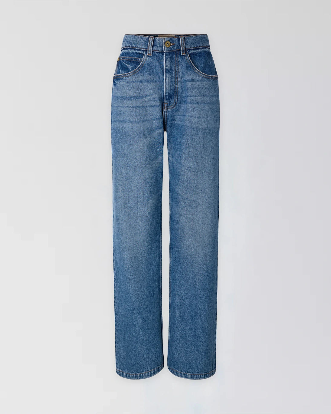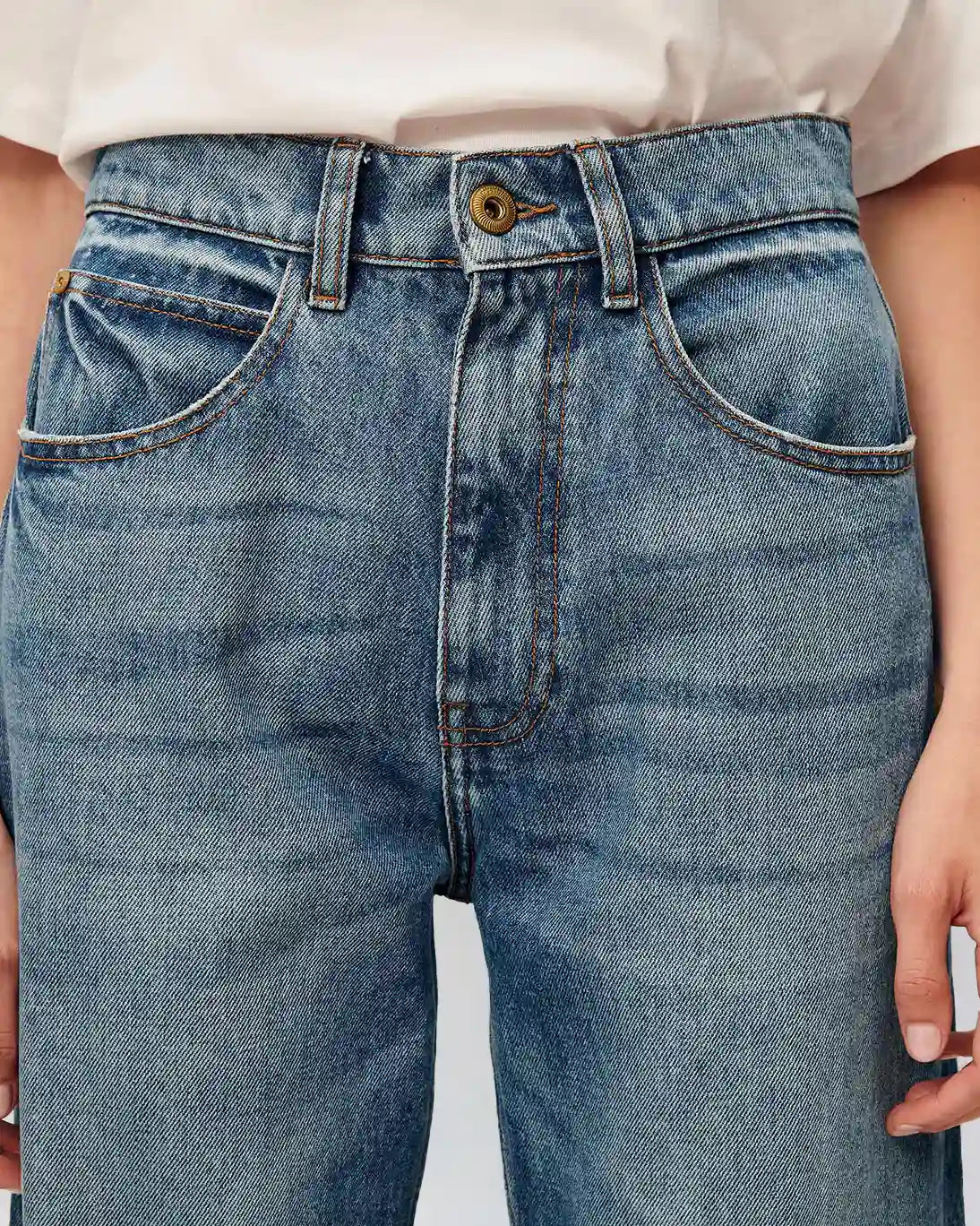 Pantalón vaquero Sailnim de la marca Sessùn. El tiro es medio-alto y pernera es amplia en tejido denim lavado. El cierre es de botón y cremallera oculta en la cintura