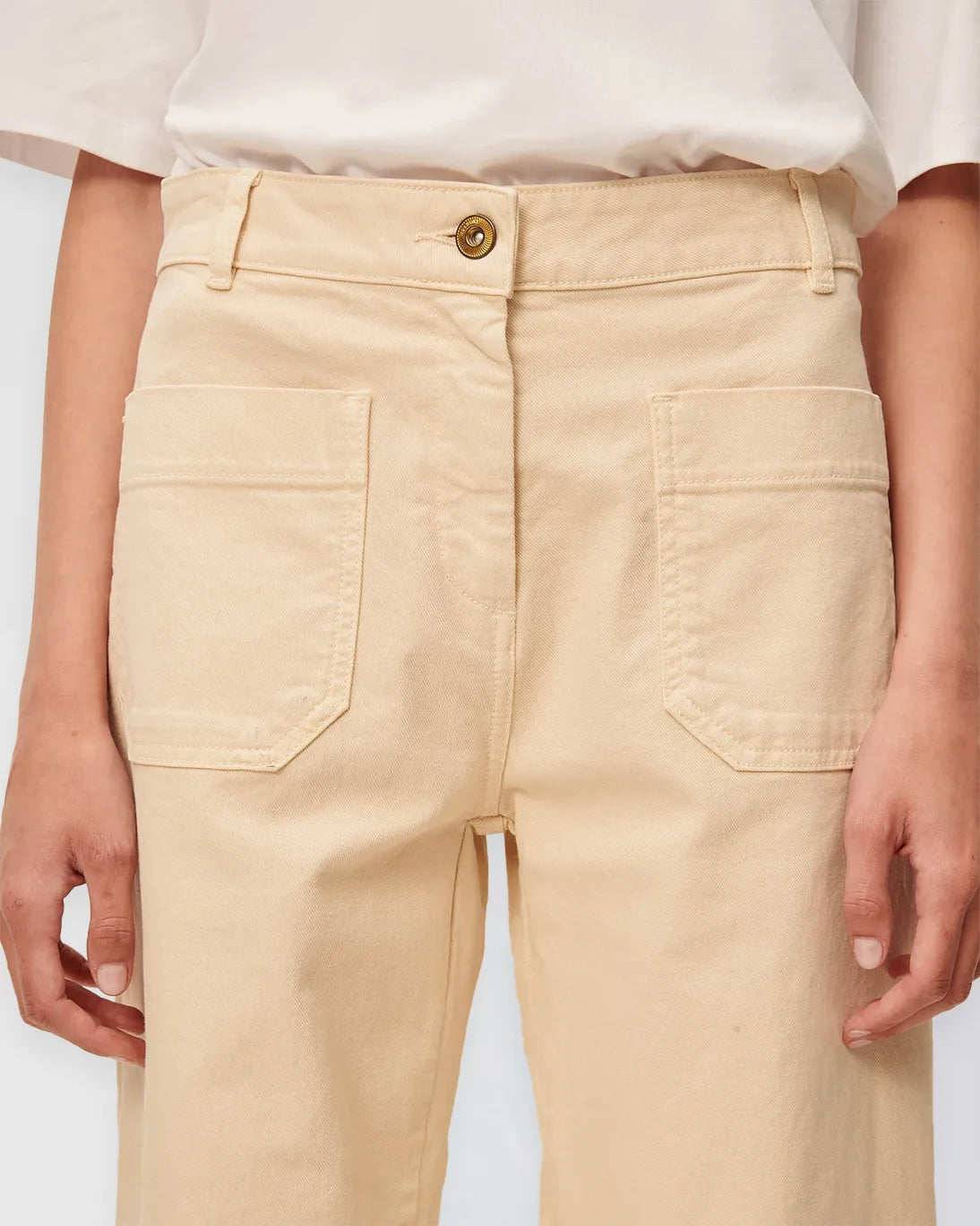 Pantalón vaquero Seakey de la marca Sessùn. El corte es ligeramente acampanado y pesquero.