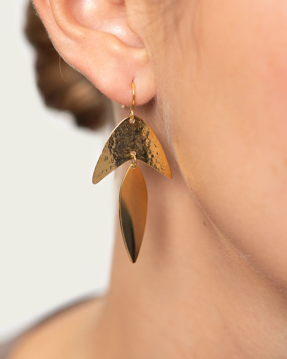 Pendiente 3 hojas de la marca Carlos Celada. Con un diseño limpio y natural, presenta tres hojas estilizadas dispuestas de manera fluida. La composición crea volumen y movimiento manteniendo la simplicidad típica de la marca.