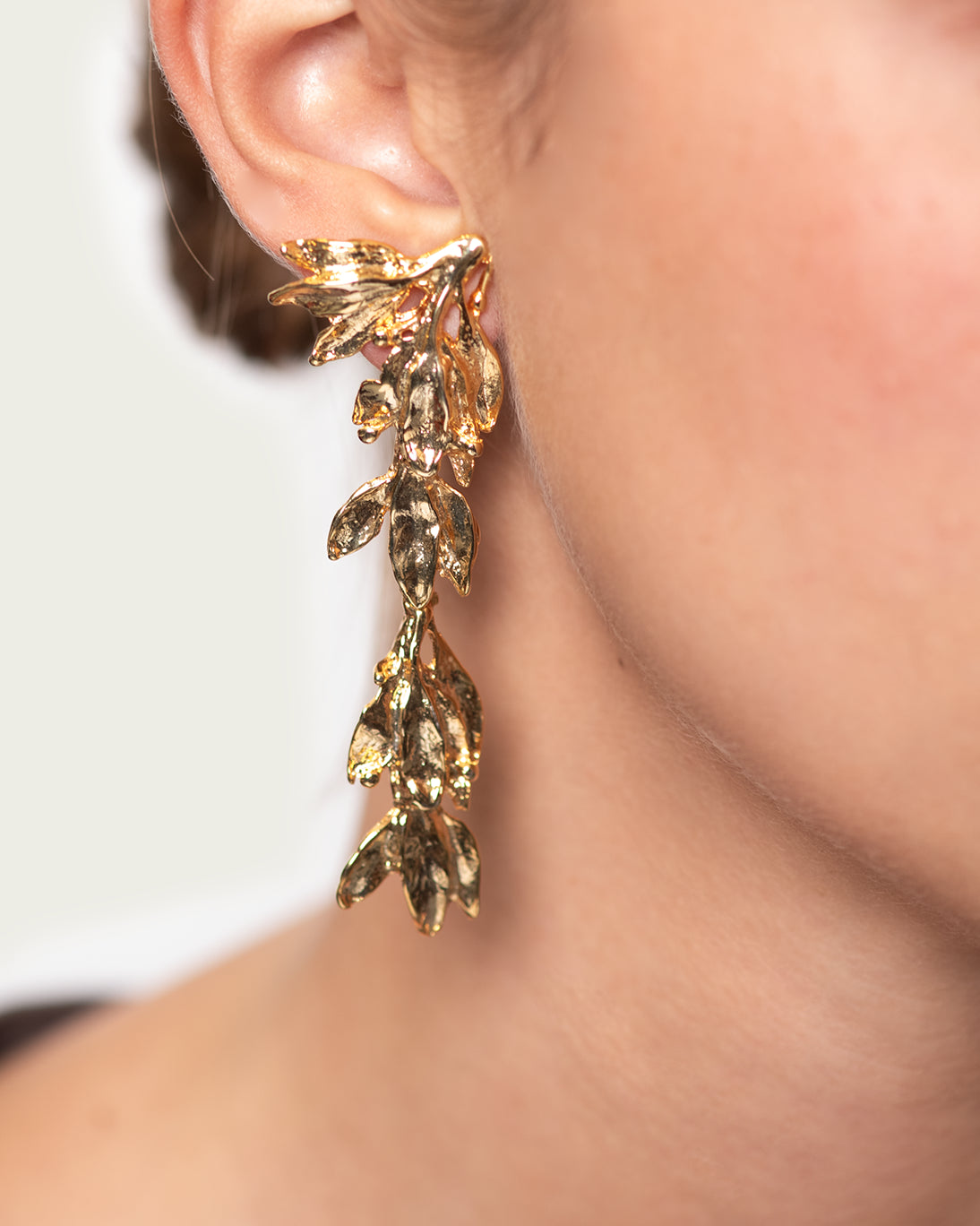 Pendiente Cascada de la marca Omi Touch. Destacan por su diseño cuidado y la calidad de sus acabados. Inspirados en formas naturales, incorporan hojas y flores trabajadas de manera artesanal.