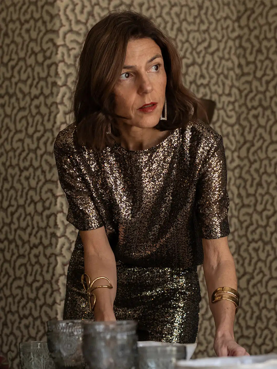 Top Viggi dorado de la marca Part Two. Es de lentejuelas y son Ideales para ocasiones especiales.
